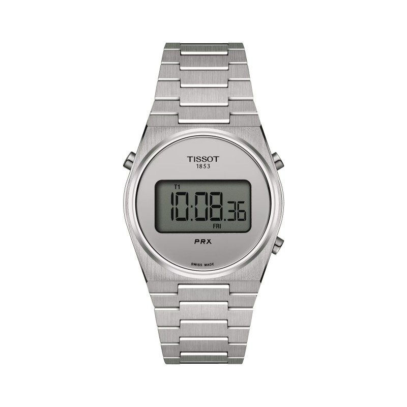 Il Tissot PRX Digital, un mix armonioso dell'iconico design PRX del 1978 e del Tissot Digital Quartz (Calibro 4012), mostra brillantemente un ibrido di epoche passate e influenze digitali. Unendo perfettamente l'estetica retrò con un tocco contemporaneo, è il segnatempo per i pionieri di oggi. Il PRX Digital, disponibile nelle opzioni da 35 mm e 40 mm e in una varietà di colori, soddisfa tutti i polsi, mentre la moltitudine di funzioni - doppio fuso orario, giorno-data, cronografo e altro ancora - soddisfa tutte le esigenze. Racchiusi da una cassa resistente all'acqua fino a 100 metri e corredati da un bracciale satinato e una chiusura pieghevole a tripla lama, questi segnatempo sono realizzati sia per la resistenza che per il comfort. La collezione Tissot PRX Digital simboleggia un viaggio nel tempo, un omaggio al passato e un brindisi al futuro.