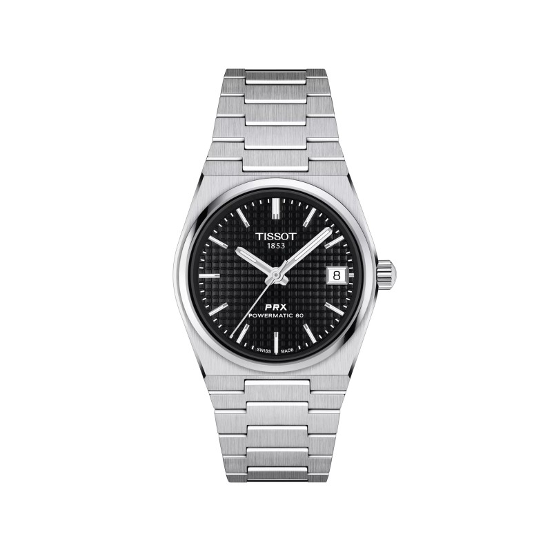 Scopri il Tissot PRX 35mm Powermatic 80, un'affascinante miscela di eleganza senza tempo e innovazione moderna. Questo orologio da 35 mm presenta una cassa in acciaio di alta qualità e un elegante quadrante nero, che reinventano le sue iconiche radici del 1978. Il caratteristico motivo del quadrante waffle aggiunge un tocco di raffinatezza e contraddistingue il modello automatico. Impermeabile fino a 100 metri e dotato di spirale del bilanciere Nivachron™, il PRX è un prodotto versatile per gli appassionati di orologi più esigenti. Il bracciale in acciaio satinato con chiusura déployante a tripla lama in acciaio garantisce il massimo confort. Vivi il fascino del Tissot PRX 35mm Powermatic 80 in nero.