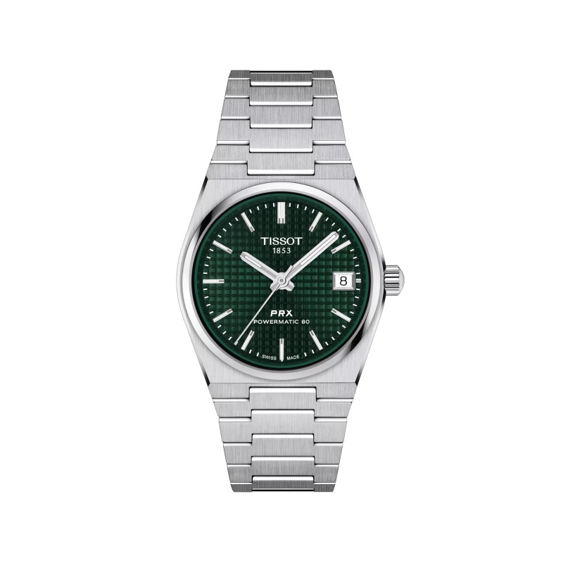 Prova il Tissot PRX 35mm Powermatic 80, un'armoniosa fusione di fascino vintage e funzionalità contemporanea. Questo orologio da 35 mm presenta una cassa in acciaio di alta qualità e un sorprendente quadrante verde, che rende omaggio alla sua classica eredità del 1978. L'esclusivo motivo del quadrante waffle conferisce profondità e carattere al modello automatico. Con una resistenza all'acqua fino a 100 metri e una spirale del bilanciere Nivachron™, il PRX offre affidabilità e stile per gli appassionati di orologi moderni. Il bracciale in acciaio satinato con chiusura déployante a tripla lama in acciaio garantisce un comfort duraturo. Migliora il tuo stile con il Tissot PRX 35mm Powermatic 80 in verde.