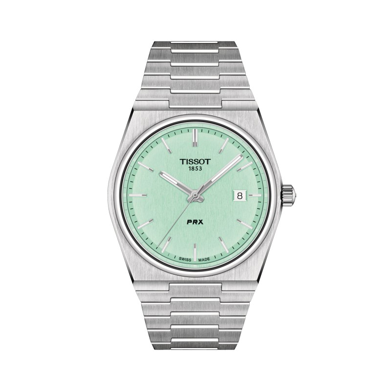 La "X" sta per il numero romano dieci e per la pressione di 10 bar che l'orologio è in grado di sopportare. Nel 2021 Tissot ha presentato il PRX 40205, È una versione moderna del modello precedente. La cassa in acciaio inossidabile 316L del Tissot PRX 40205 ha un diametro di 40 mm. Ha una forma leggermente tonneau ed è ornato da una lunetta stretta e rotonda. Ai lati, spazzolate verticalmente, finiture arrotondate si alternano a sfaccettature lucide. Il Tissot PRX 40205 Quartz è dotato di un quadrante con un motivo a raggiera verde chiaro in combinazione con indici e lancette nichelati.
