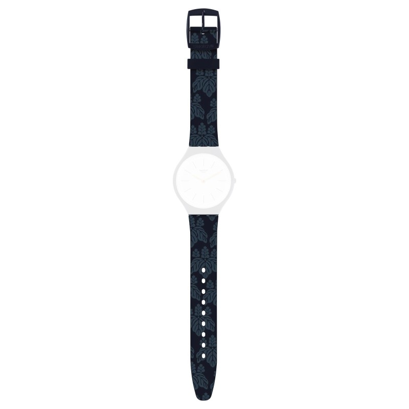 Cinturino in silicone blu notte con stampa fantasia per modello Swatch New Skin Small.