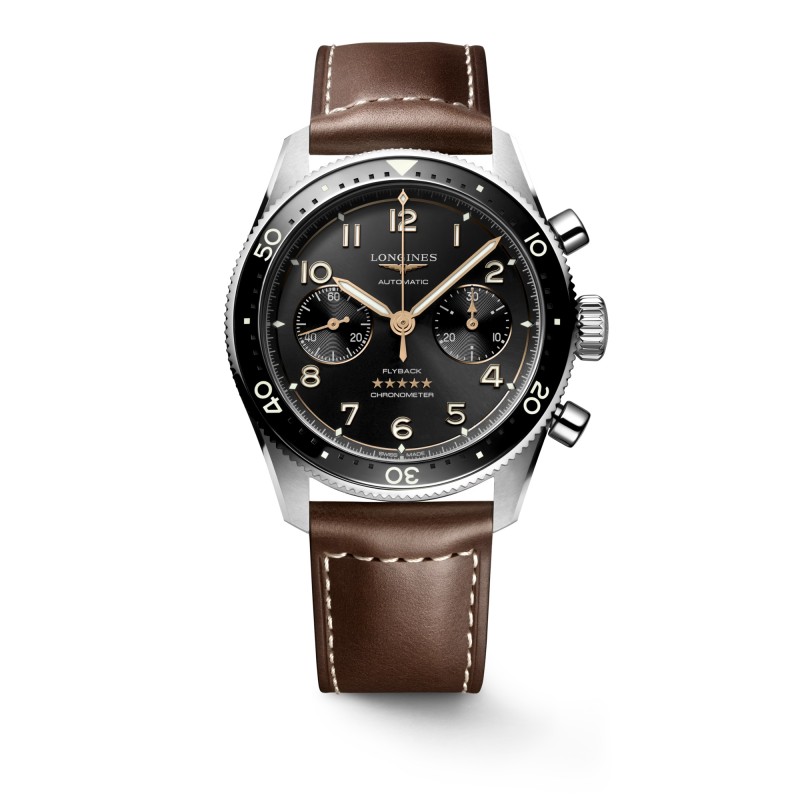La collezione Longines Spirit è stata ampliata con un modello con funzione Flyback. Un nuovo esclusivo calibro Longines, resistente ai campi magnetici e dotato di bilanciere-spirale in silicio, aziona il segnatempo. Estremamente preciso e con riserva di carica di 68 ore, questo movimento è certificato come cronometro dal COSC. Il fondello trasparente rivela tutti i dettagli del calibro, incluso un peso personalizzato con inciso il globo simbolo della collezione Longines Spirit e il nome Longines Flyback. Questo nuovo modello si distingue anche per l'estetica raffinata e le finiture ad altissima precisione, con dettagli satinati, opachi, lucidi e incisi. Presenta una lunetta bidirezionale decorata da un inserto in ceramica nera con indici luminescenti e quadrante nero con finitura a raggi di sole. La cassa in acciaio da 42 mm è abbinata a un cinturino in pelle marrone con fibbia déployante con nuovo sistema di micro-regolazione per il massimo del comfort e la vestibilità perfetta.