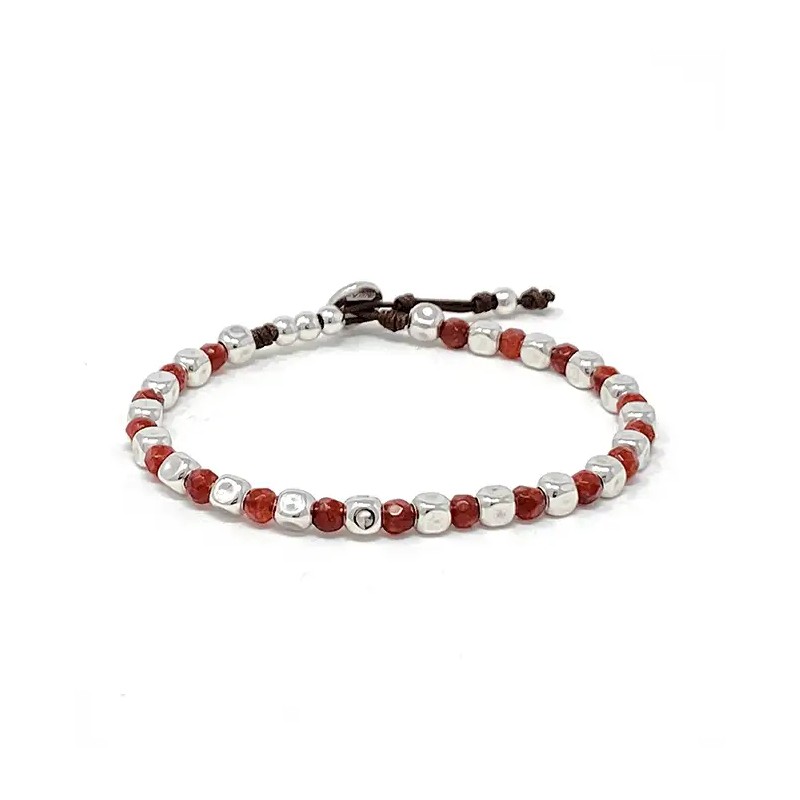 Bracciale in cordino nautico tecnico colorato, argento e pietre naturali.