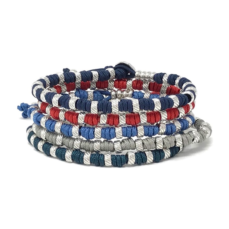 Bracciale unisex, in vela resistente all’acqua, con cilindretti in argento diametro 5mm.