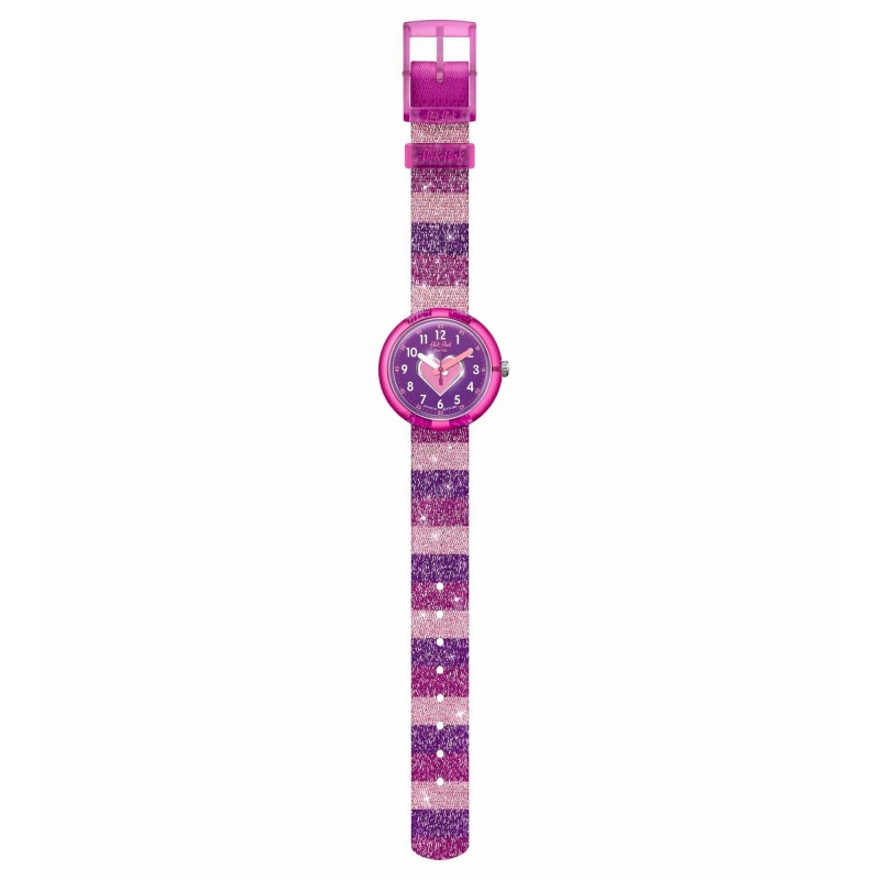 Ecco un regalo davvero chic: l’orologio educativo per bambini Stripy Glitter, con un cinturino glitterato e un quadrante a forma di cuore rosa.