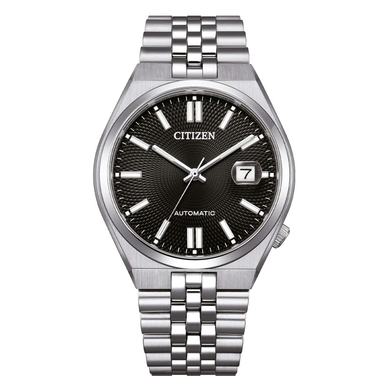 Cassa e bracciale in acciaio. Fondello con oblò trasparente e movimento a vista. Vetro zaffiro. WR 5 bar.