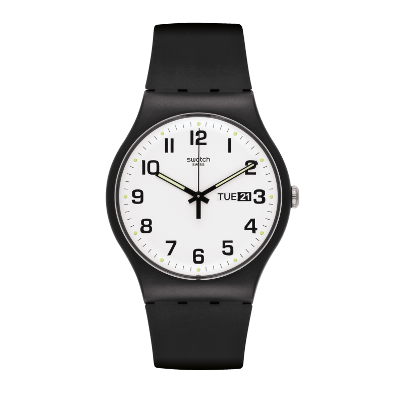 TWICE AGAIN (SUOB705) nasce per ricordarti che c’è una prima volta per tutto... e spesso una seconda. L’orologio, dal design minimalista, ha un cinturino nero e un datario con giorno e data sul quadrante bianco.