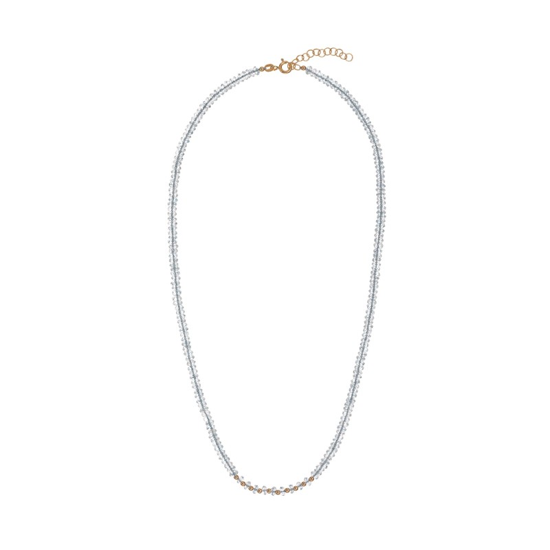 Collana girocollo con beads di acquamarina sfaccetata infilata con filo di cotone azzurro e chiusura in oro 18 kt.