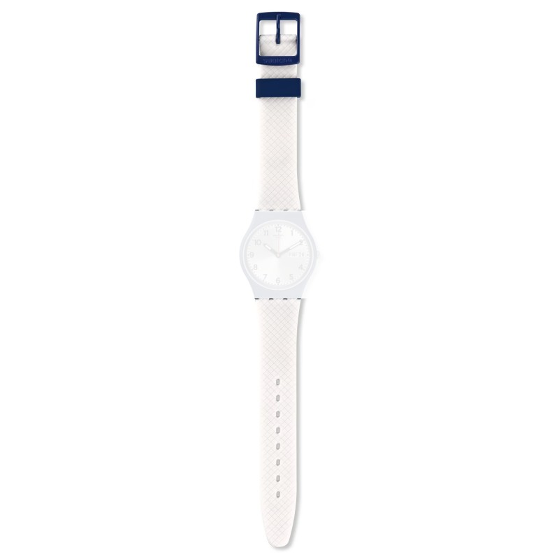 Cinturino in silicone bianco texturizzato con fibbia e passanti blu per modello Swatch Original Gent WHITE DELIGHT.