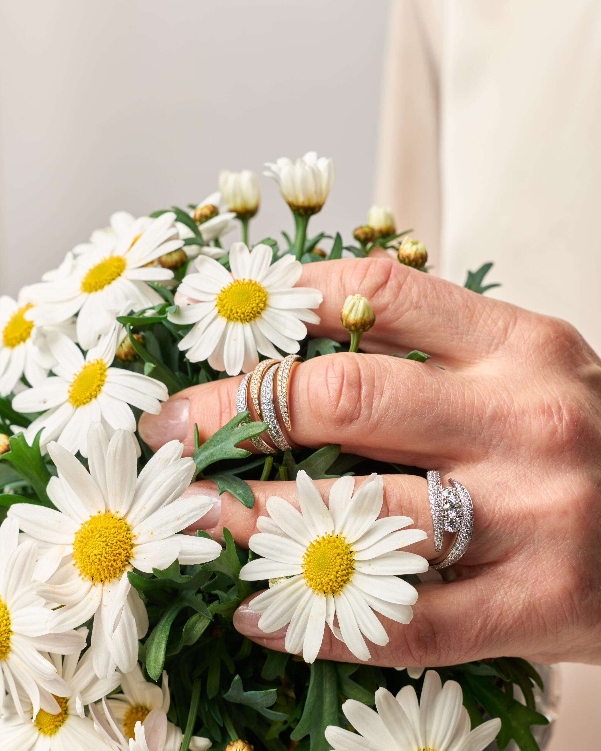 Un incontro delicato tra anelli e margherite